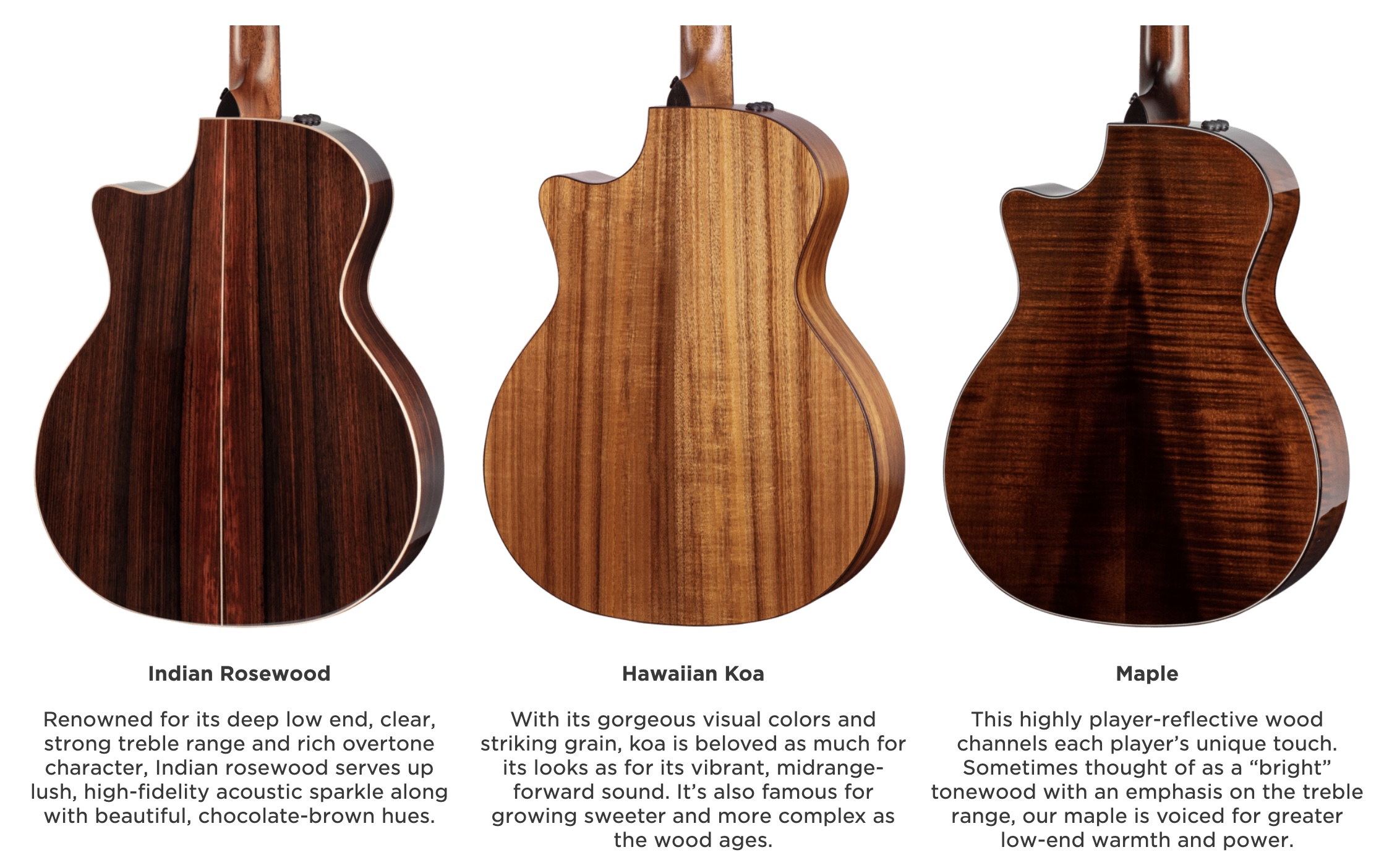 Their site has a wealth of information about what goes into making a Taylor guitar and how to make this very important decision. They have guides for how to find the right fit for you. Learn about the subtle differences in shapes and styles. Delve into different types of woods and construction, which are vital to the flavor and tone of an acoustic. Explore the Taylor line by series to find the look and style you want for your instrument.