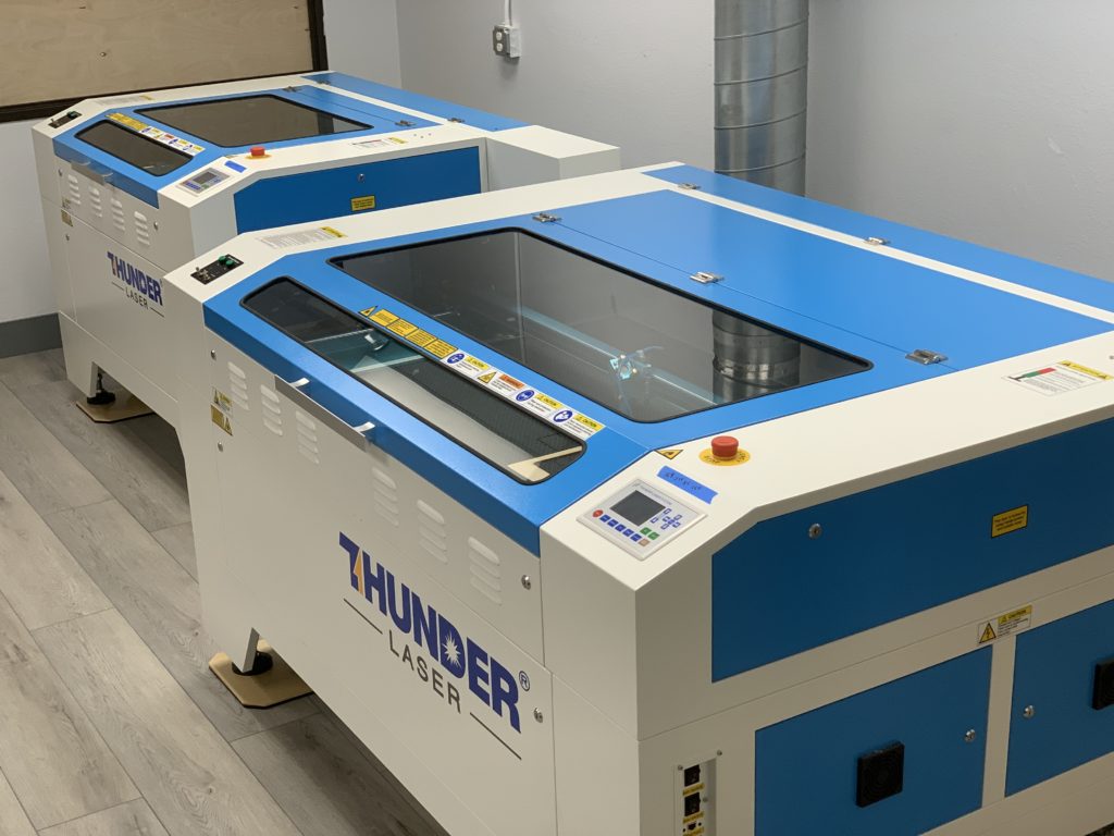 After lots of research, many reference interviews and aggressive negotiating, the skys rumbled and in June of 2022 we received our Thunder Lasers. Two important things to know about these lasers: 1) they operated almost identically to our old lasers so little retraining was needed and 2) they were more powerful and mechanically sound than our older lasers. The result is a major upgrade in quality.